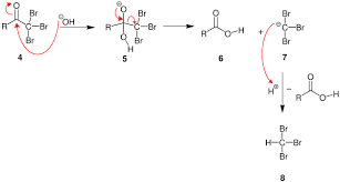 When methyl ketones are treated with a halogen in the presence of base(sodium hypohalite ),the three hydrogen atoms on the methyl carbon are replaced to give a CX3-substituted ketone.
